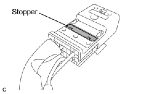 (e) Using a screwdriver, release the stopper.
