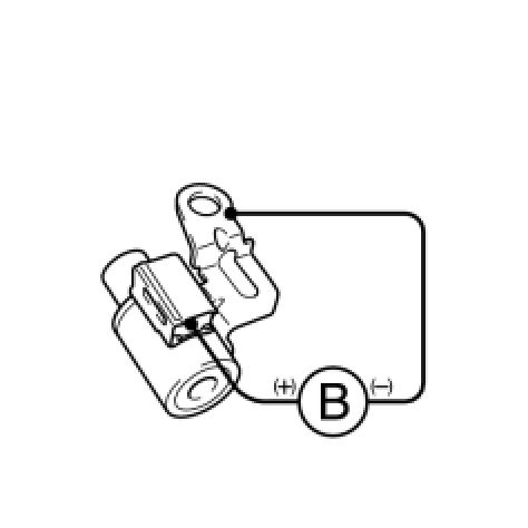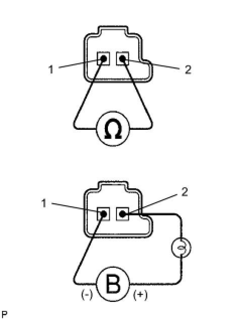 (c) Connect the positive (+) lead to terminal 2 and the negative (-) lead to terminal 1 of the solenoid valve connector, then check the movement of the shift solenoid valve.