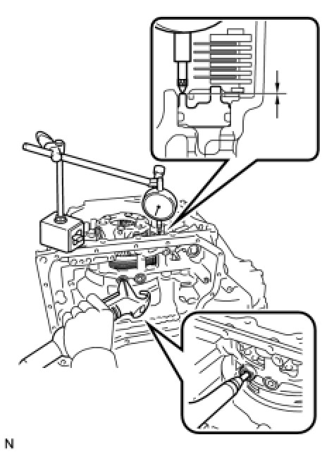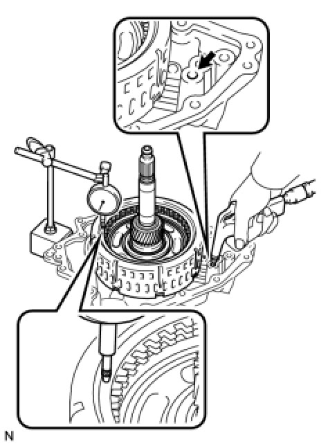 (a) Using a dial indicator, measure the inside diameter of the bushings of the planetary sun gear.