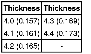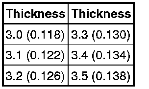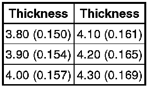 0.806 to 0.974 mm (0.0317 to 0.0383 in.)