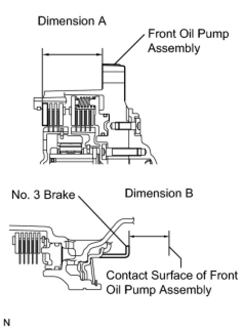 Measure dimension B at 3 points where the No. 3 brake diameter is approximately 166 mm (6.54 in.) and calculate the average.