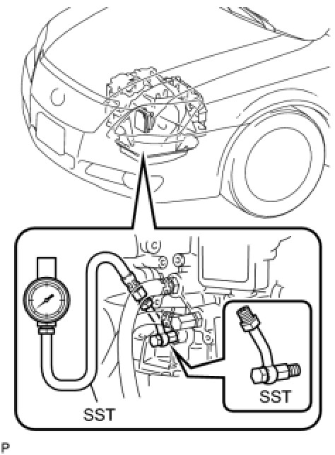 (4) Remove the test plug on the transaxle case front left side and install the SST.