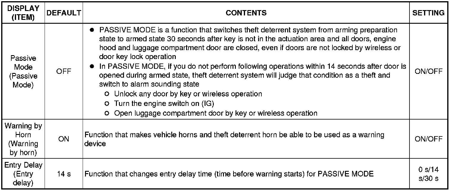 THEFT DETERRENT: THEFT DETERRENT SYSTEM (w/ Smart Key System): CUSTOMIZE PARAMETERS