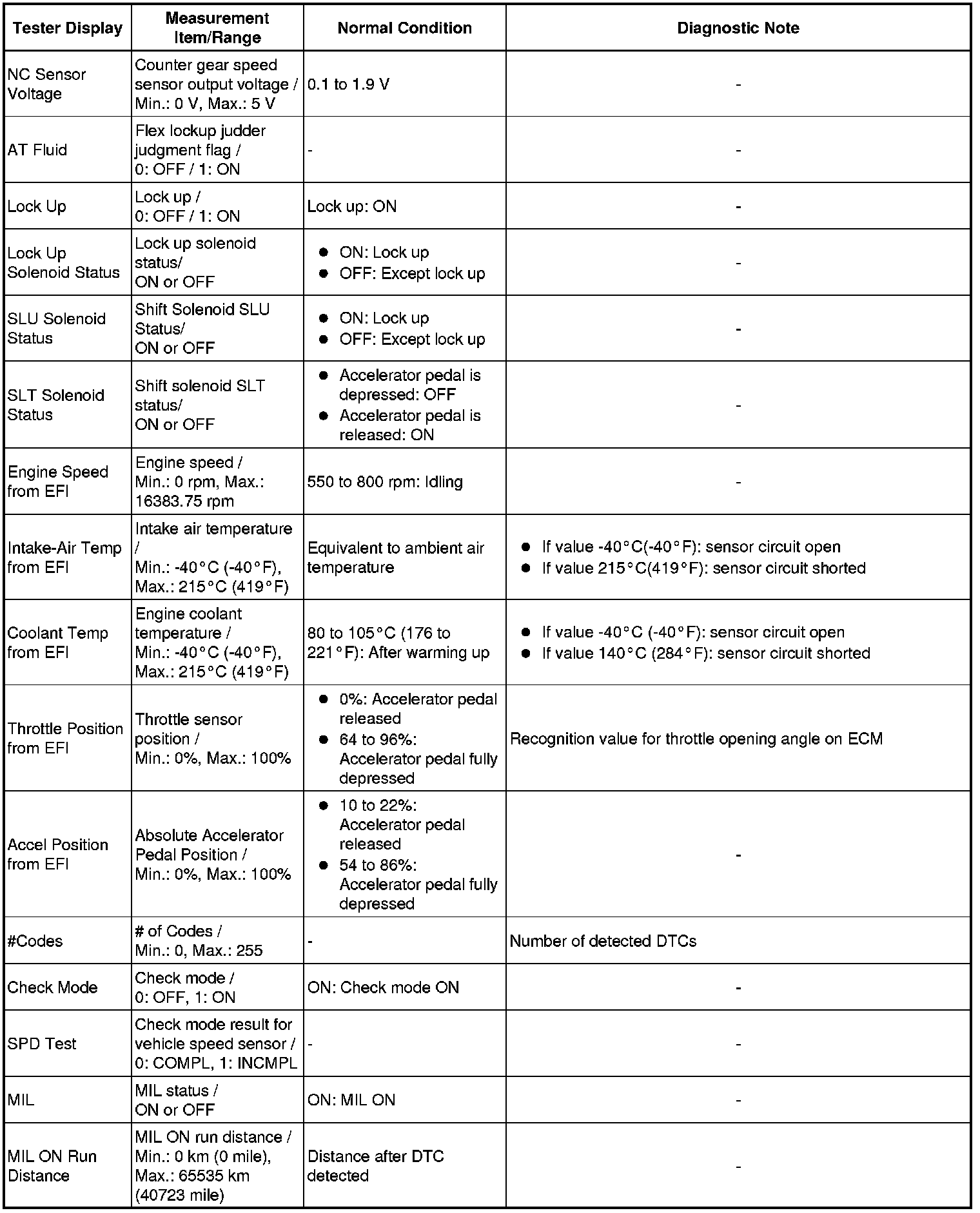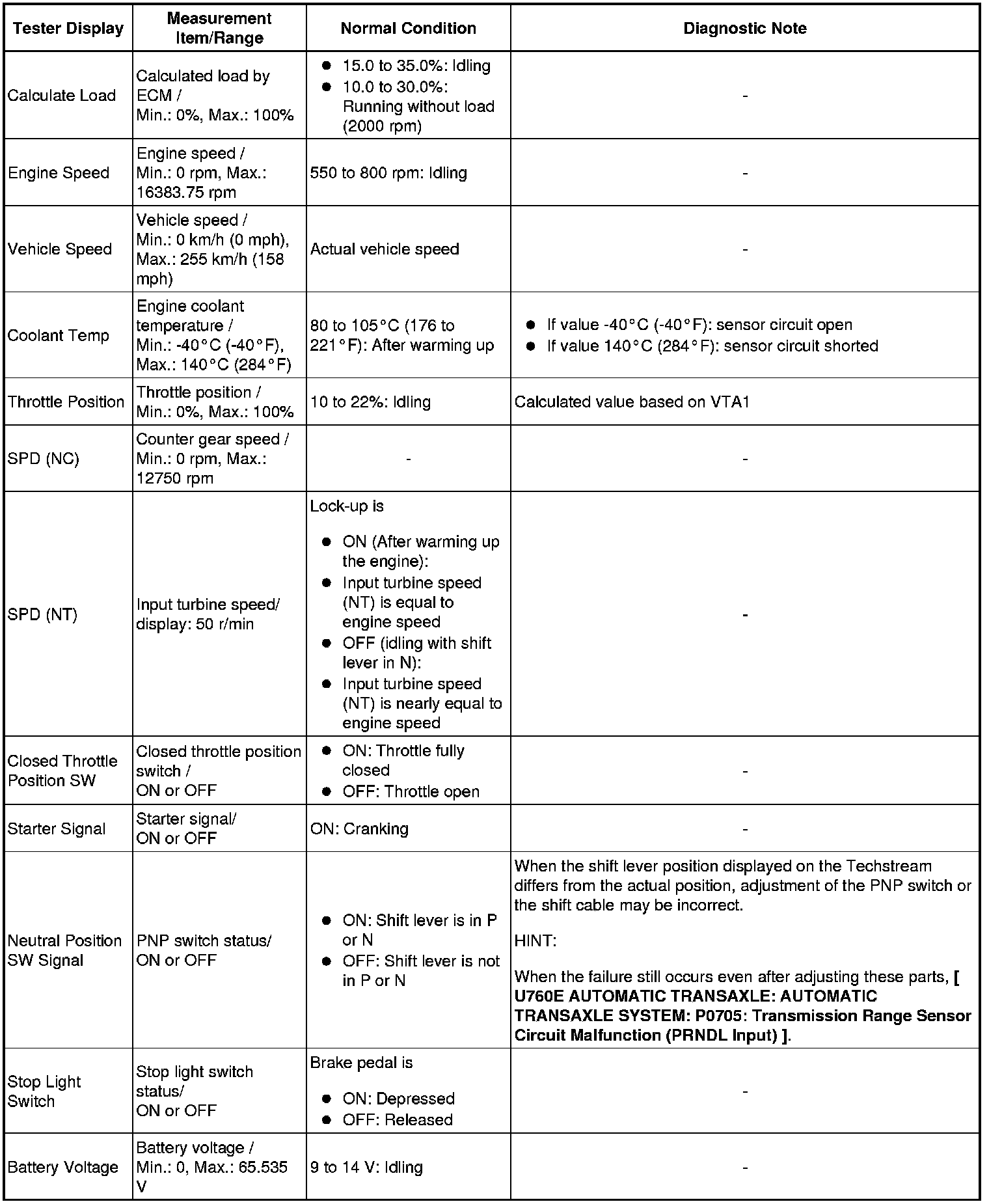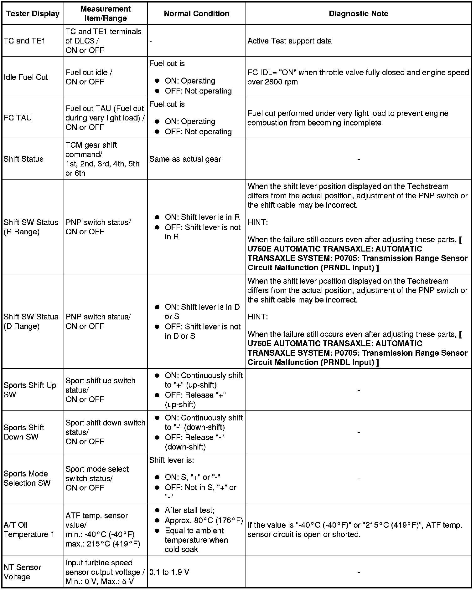 U760E AUTOMATIC TRANSAXLE: AUTOMATIC TRANSAXLE SYSTEM: DATA LIST / ACTIVE TEST