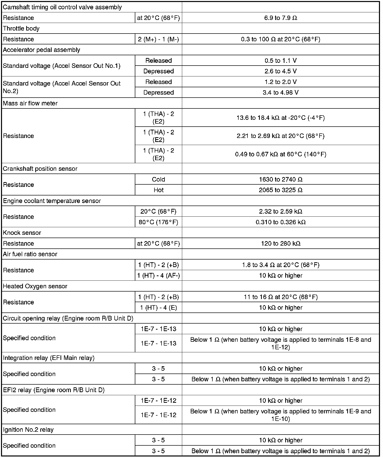 SERVICE SPECIFICATIONS: 2AR-FE ENGINE CONTROL SYSTEM: SERVICE DATA