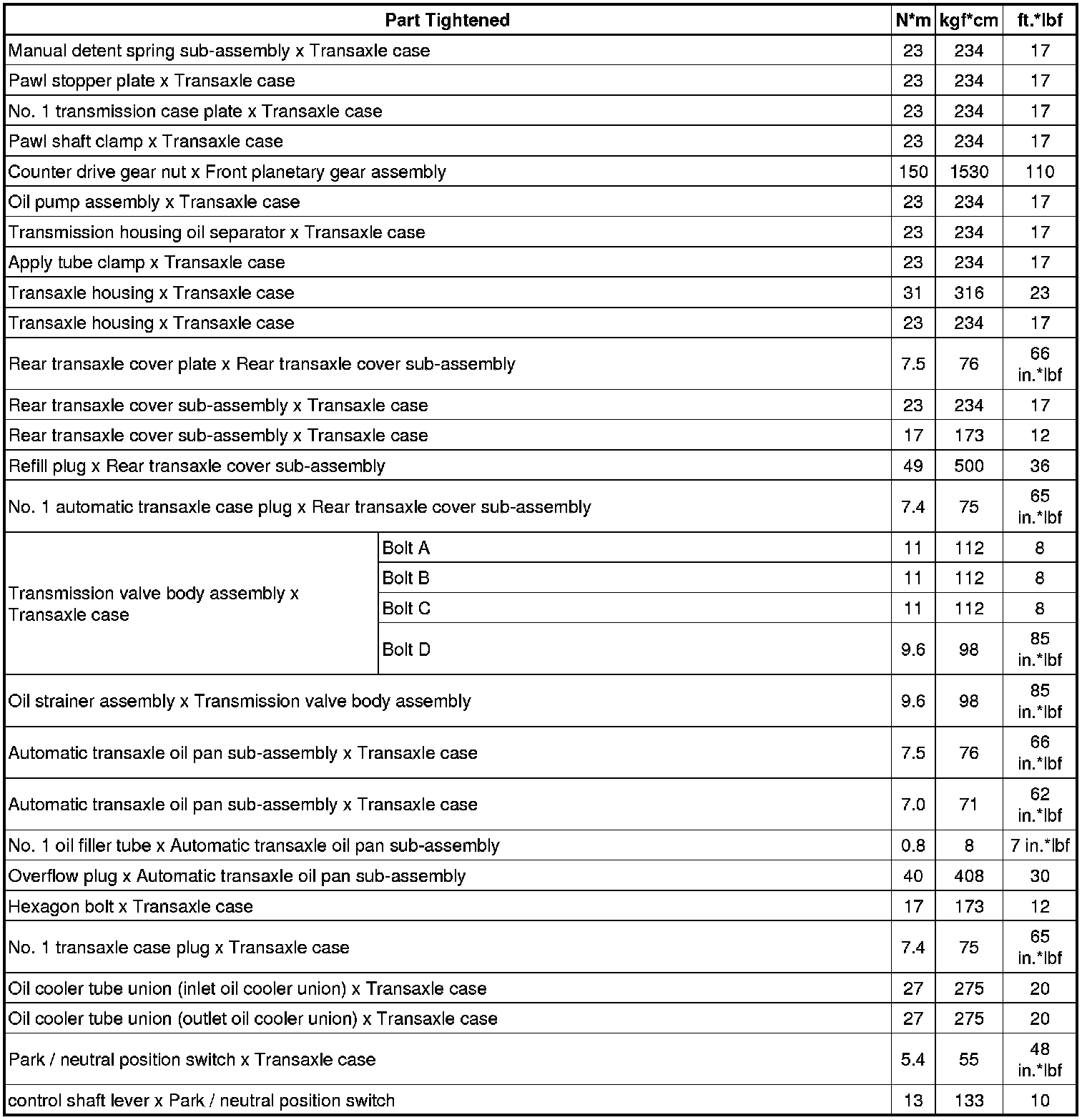 SERVICE SPECIFICATIONS: U760E AUTOMATIC TRANSAXLE: TORQUE SPECIFICATIONS