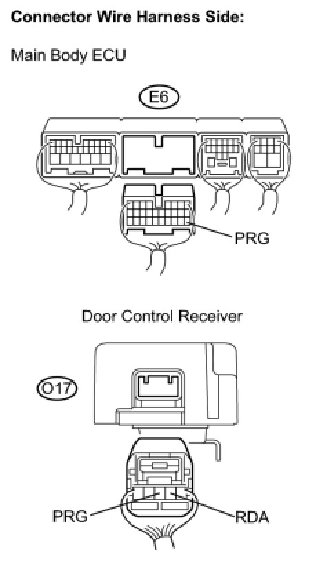 (a) Disconnect the E6 main body ECU connector and the O17 door control receiver connector.