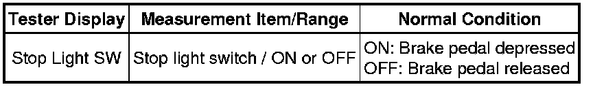 (b) Check that the stop light condition observed on Techstream changes when the brake pedal is depressed.