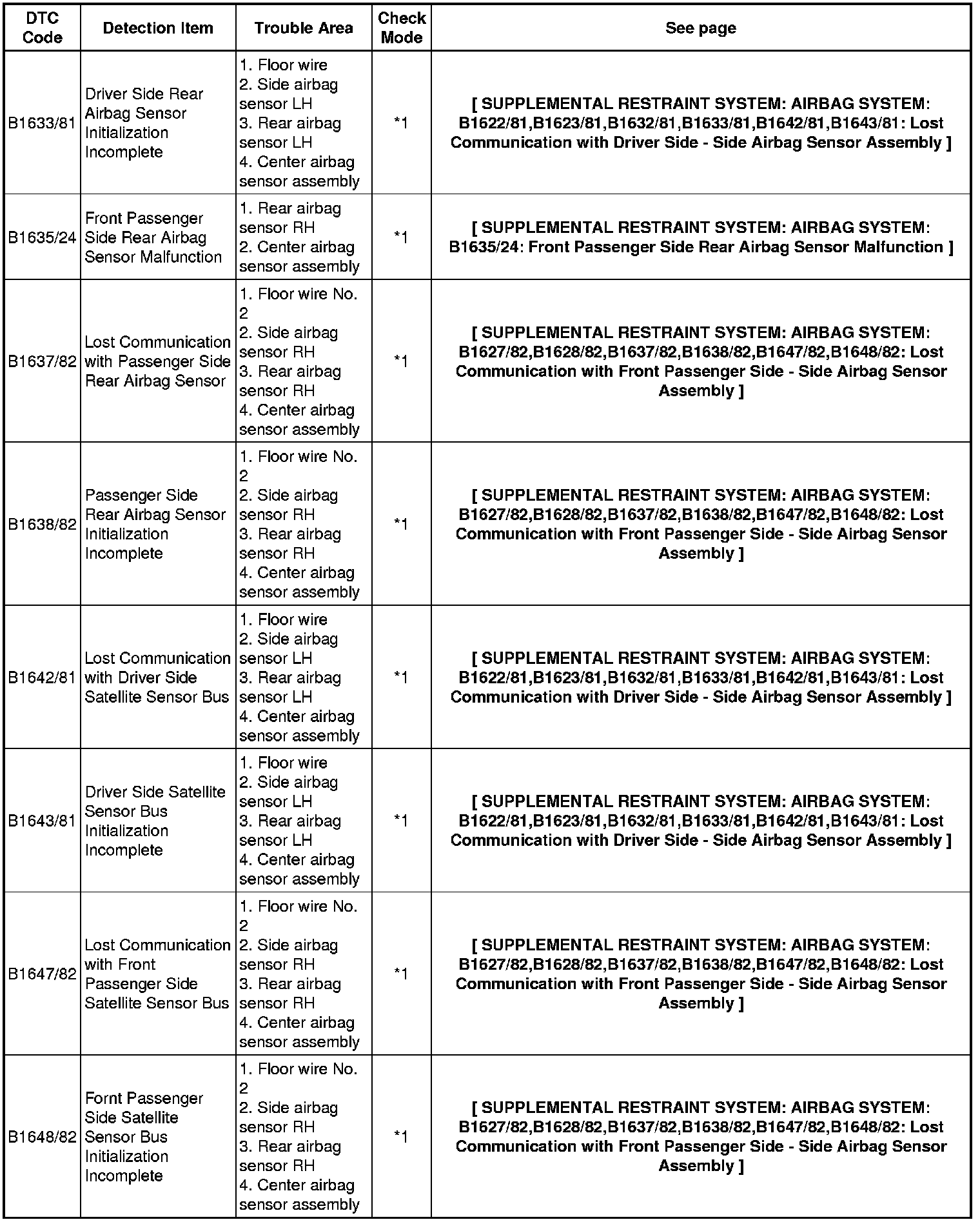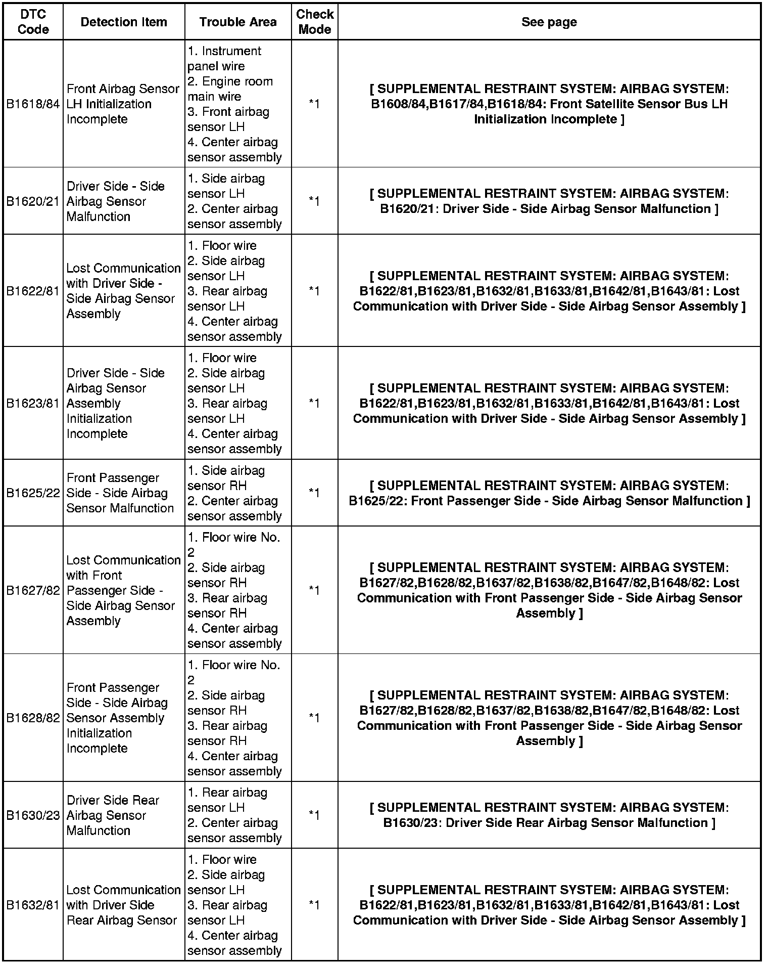 * If a code is not listed on the display chart, the center airbag sensor assembly may have failed.