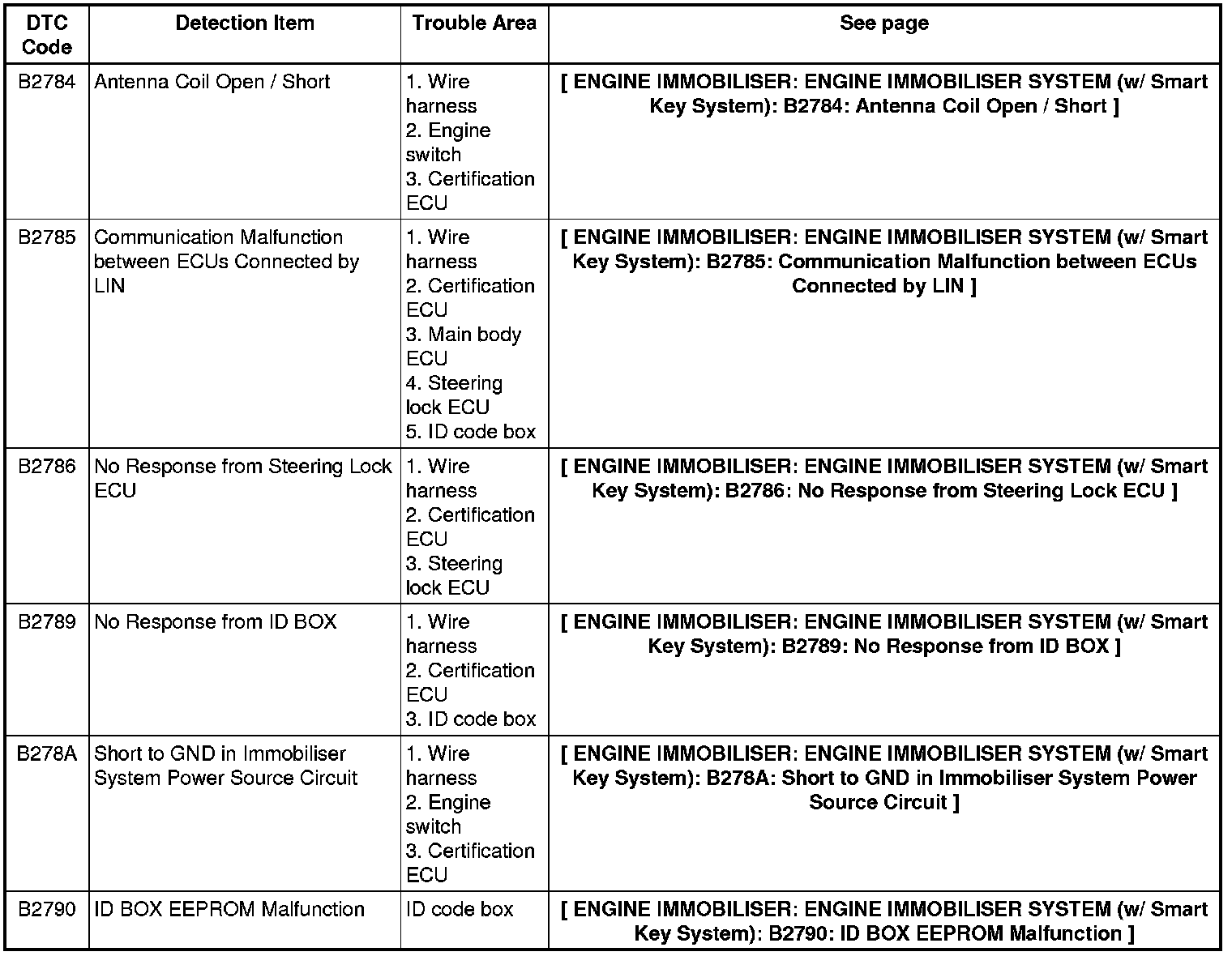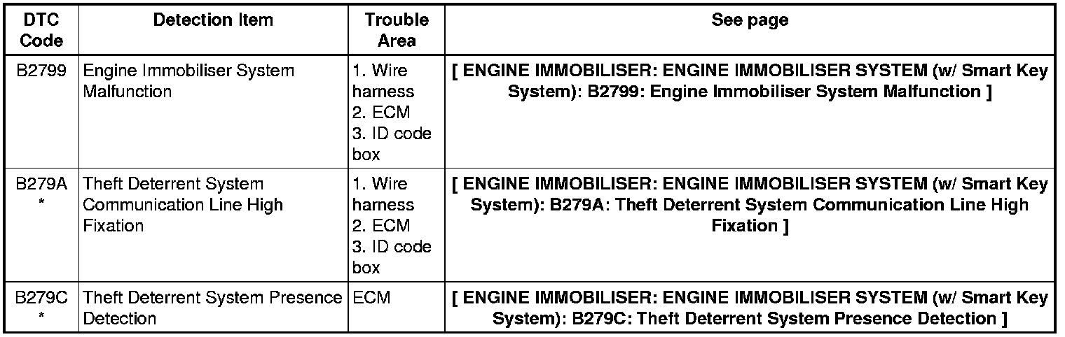 ENGINE IMMOBILISER: ENGINE IMMOBILISER SYSTEM (w/ Smart Key System): DIAGNOSTIC TROUBLE CODE CHART
