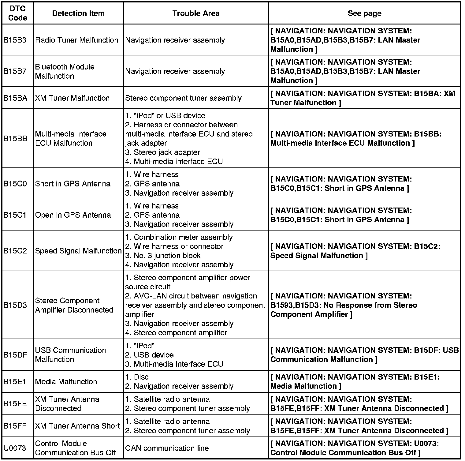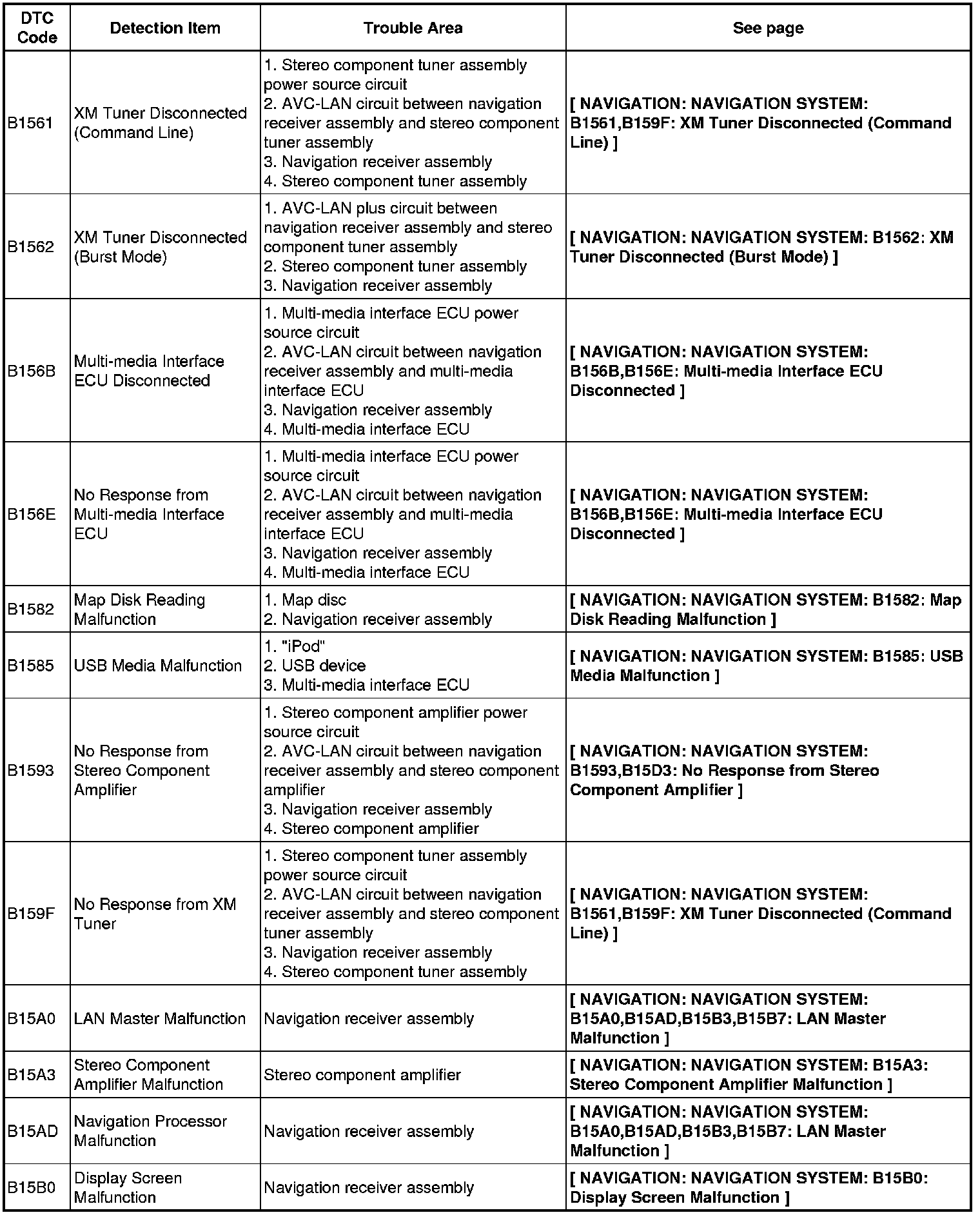NAVIGATION: NAVIGATION SYSTEM: DIAGNOSTIC TROUBLE CODE CHART