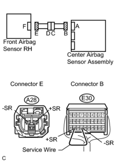 (a) Using a service wire, connect terminals 29 (+SR) and 27 (-SR) of connector B.