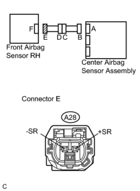(c) Check that the connectors are properly connected to the center airbag sensor assembly and the front airbag sensor RH.