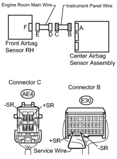 Do not forcibly insert a service wire into the terminals of the connector when connecting.