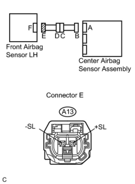 (b) Check that the connectors (on the center airbag sensor assembly side and front airbag sensor LH side) are not damaged.