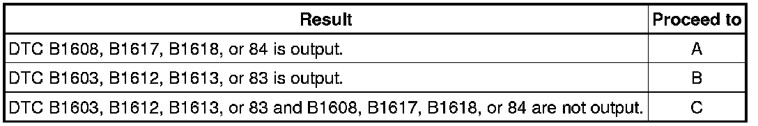 Codes other than DTC B1608, B1617, B1618, or 84 and B1603, B1612, B1613, or 83 may be output at this time, but they are not related to this check.