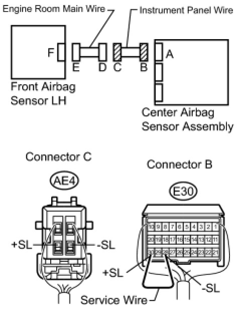 (a) Using a service wire, connect terminals 30 (+SL) and 28 (-SL) of connector B.
