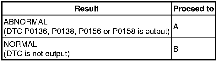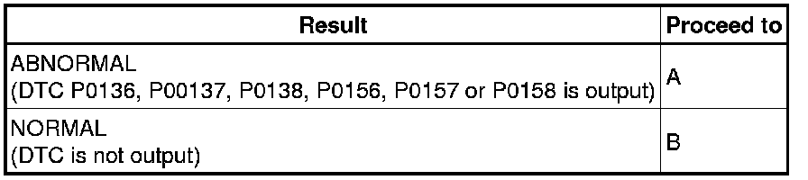 14. CHECK WHETHER DTC OUTPUT RECURS (DTC P0136, P0137, P0138, P0156, P0157 OR P0158)