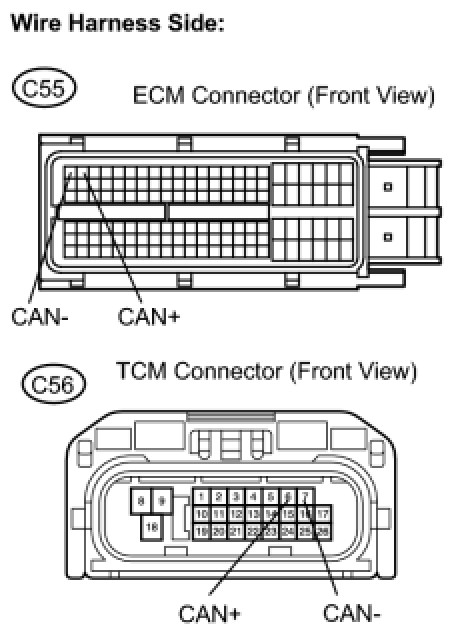 The engine control unit intercommunicates with the TCM with the Controller Area Network (CAN).