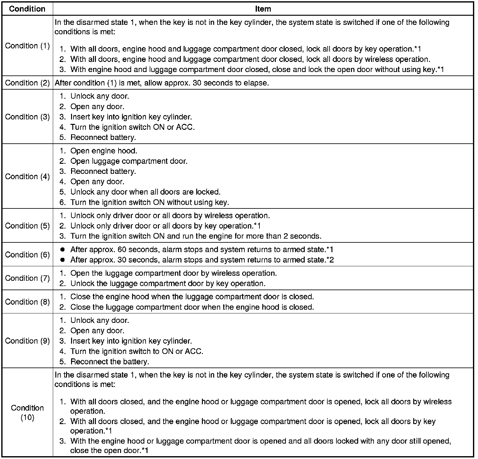 * *1: Disarmed state 1 is the normal disarmed state.