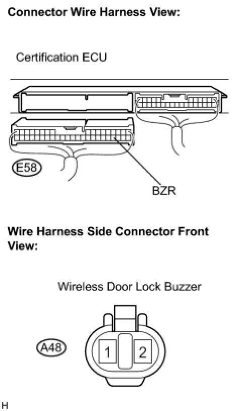 (a) Disconnect the E58 certification ECU connector and A48 wireless door lock buzzer connector.