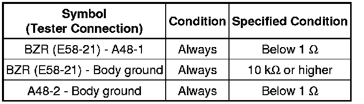 The buzzer activation circuit is built into the ECU, not into the buzzer itself. When battery voltage is applied directly to the buzzer, the buzzer will not sound.