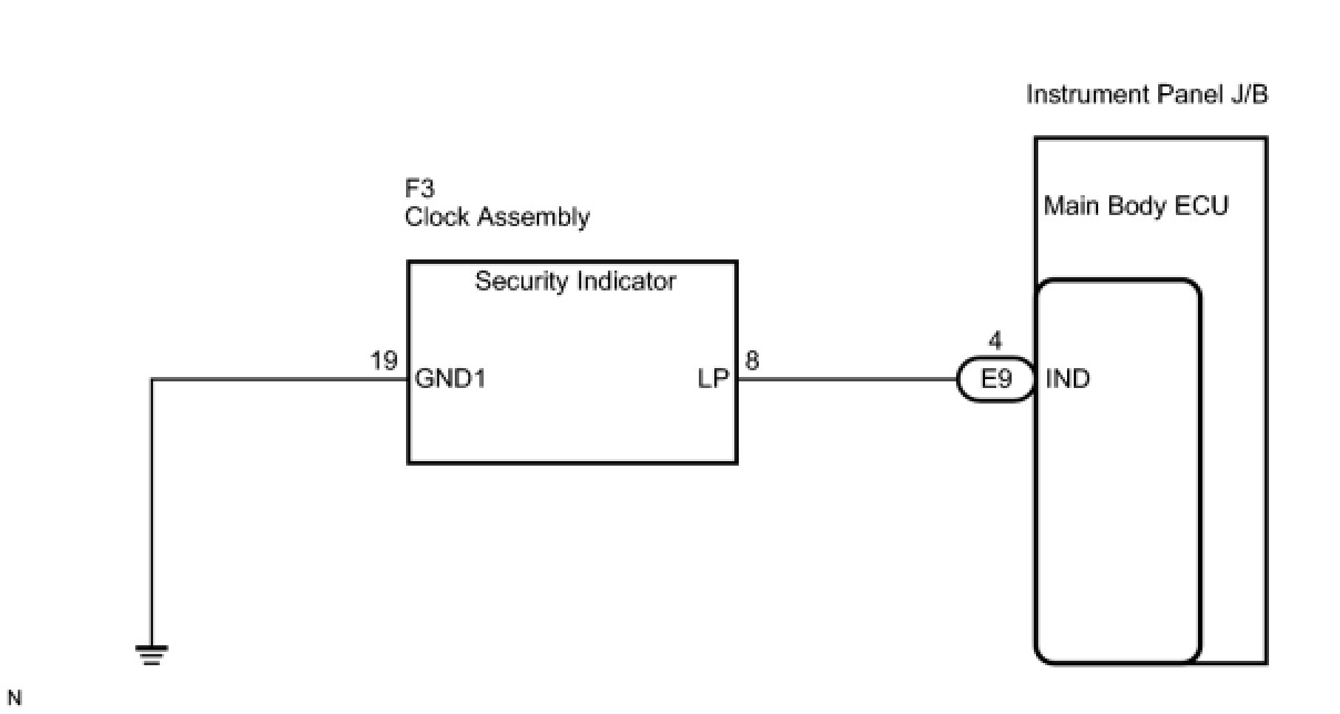 The main body ECU causes the security indicator to light up or blink only during the arming preparation state and alarm sounding states.