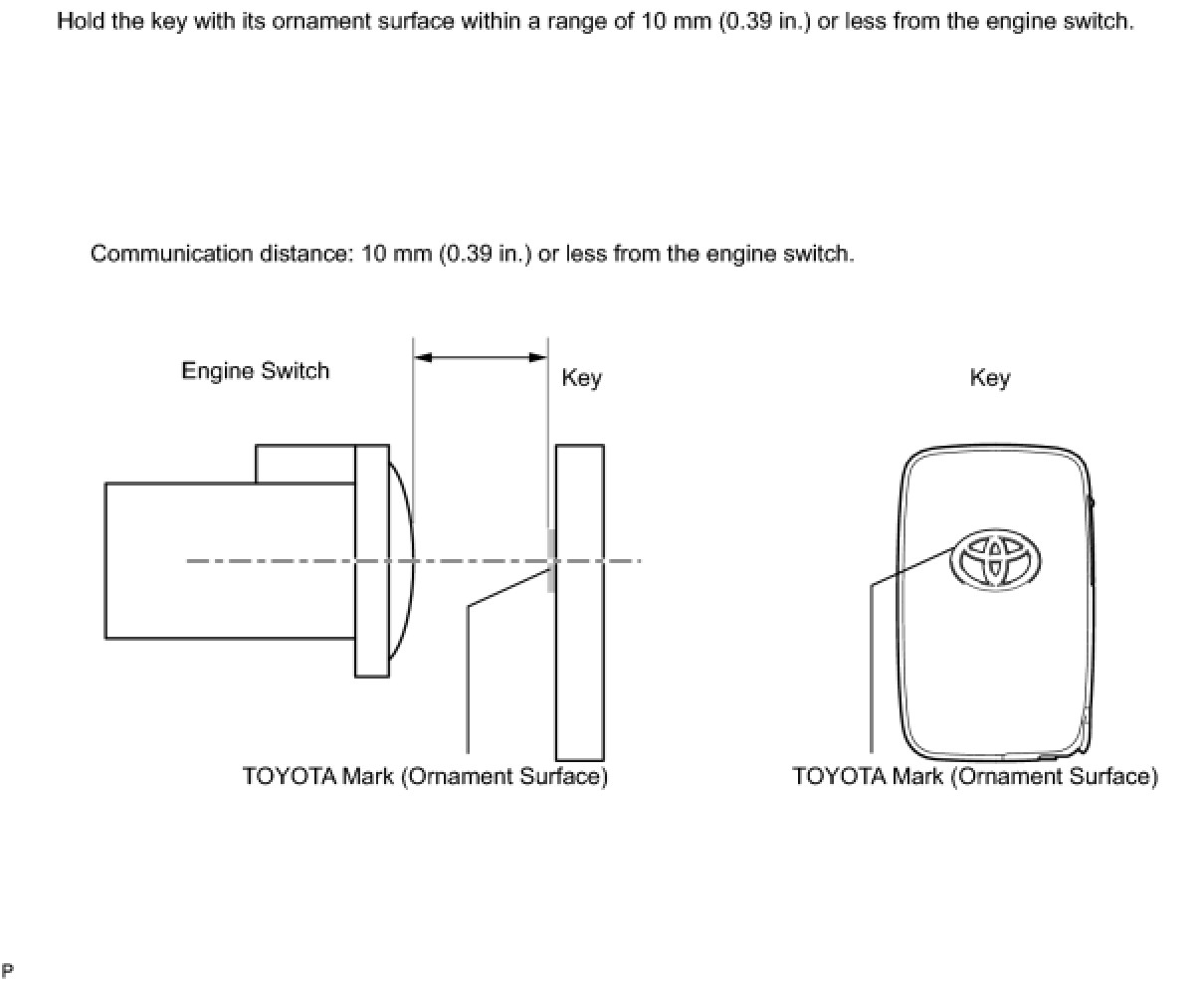 The vehicle with the smart key system does not have a key slot. Therefore, hold the key close to the engine switch to register the key, as shown in the illustration below.