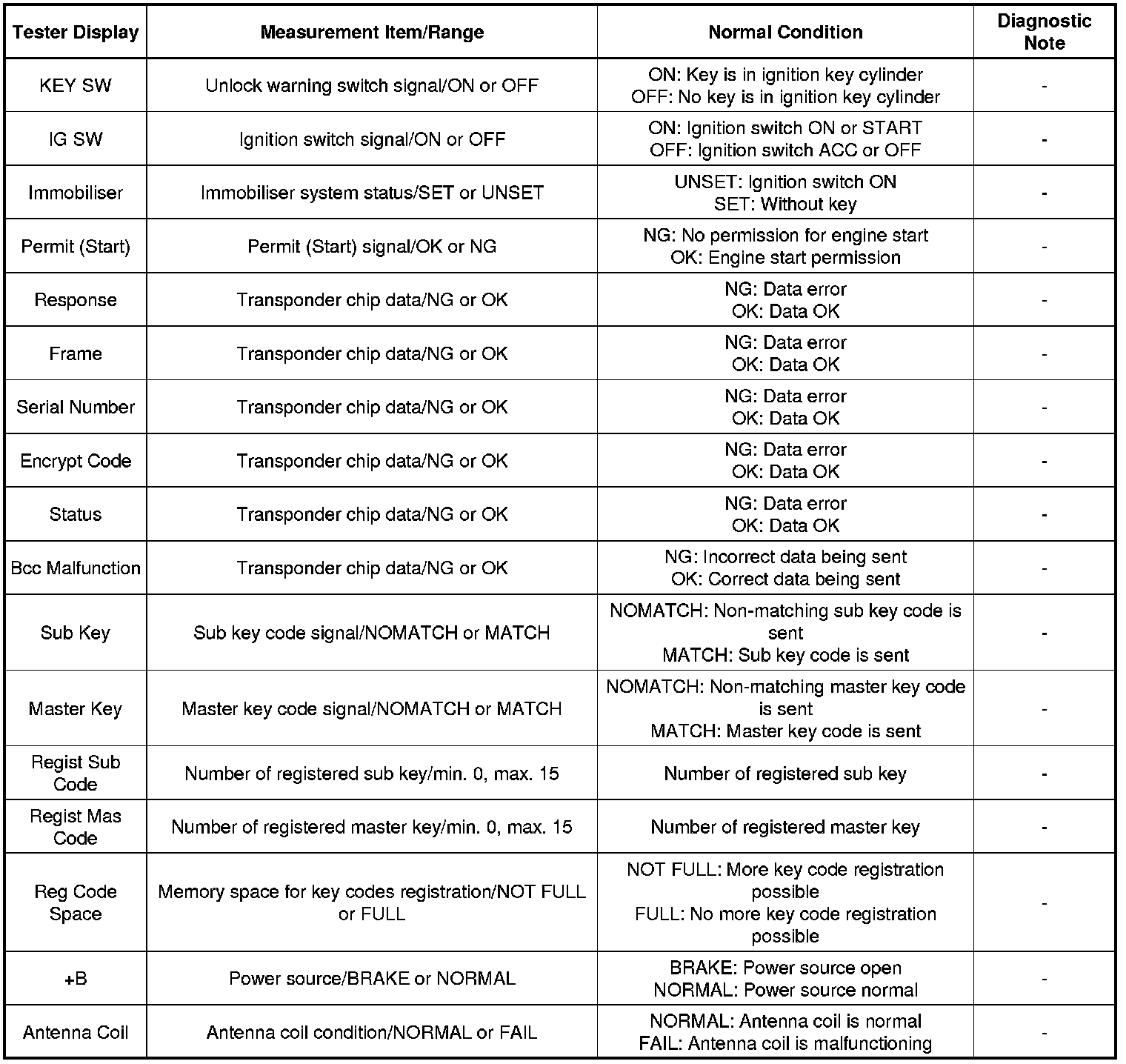 ENGINE IMMOBILISER: ENGINE IMMOBILISER SYSTEM (w/o Smart Key System): DATA LIST / ACTIVE TEST