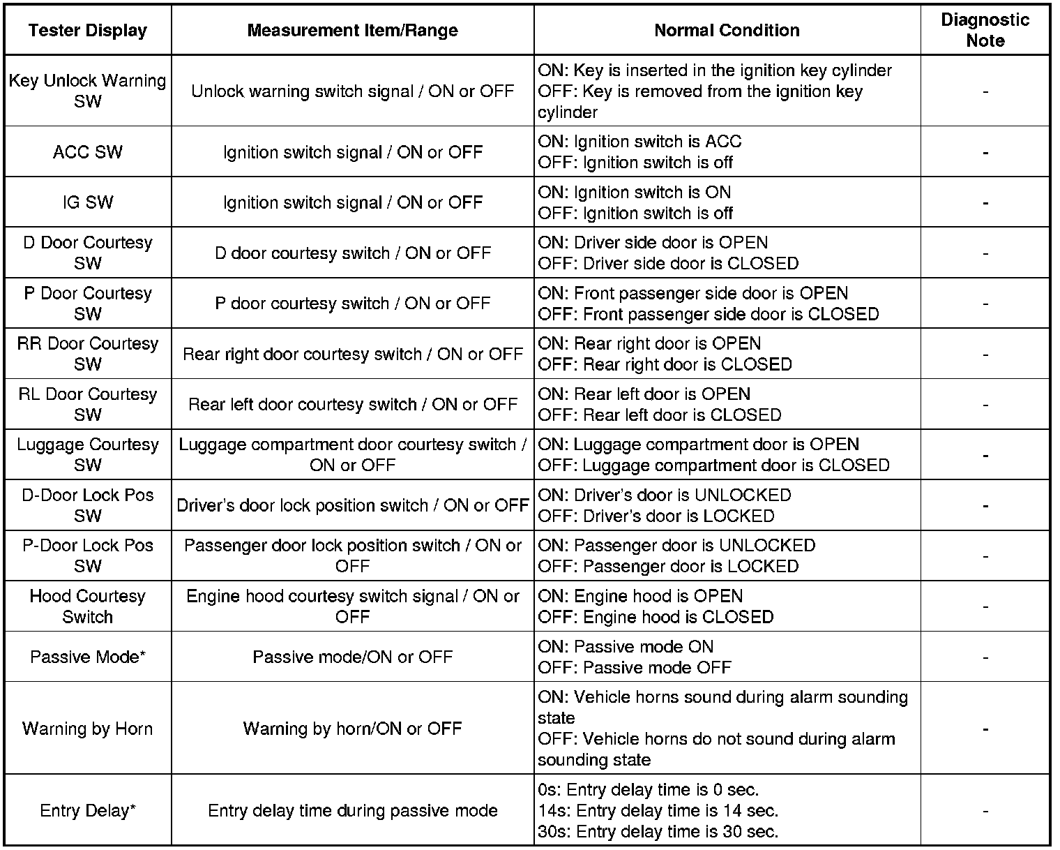 THEFT DETERRENT: THEFT DETERRENT SYSTEM (w/o Smart Key System): DATA LIST / ACTIVE TEST