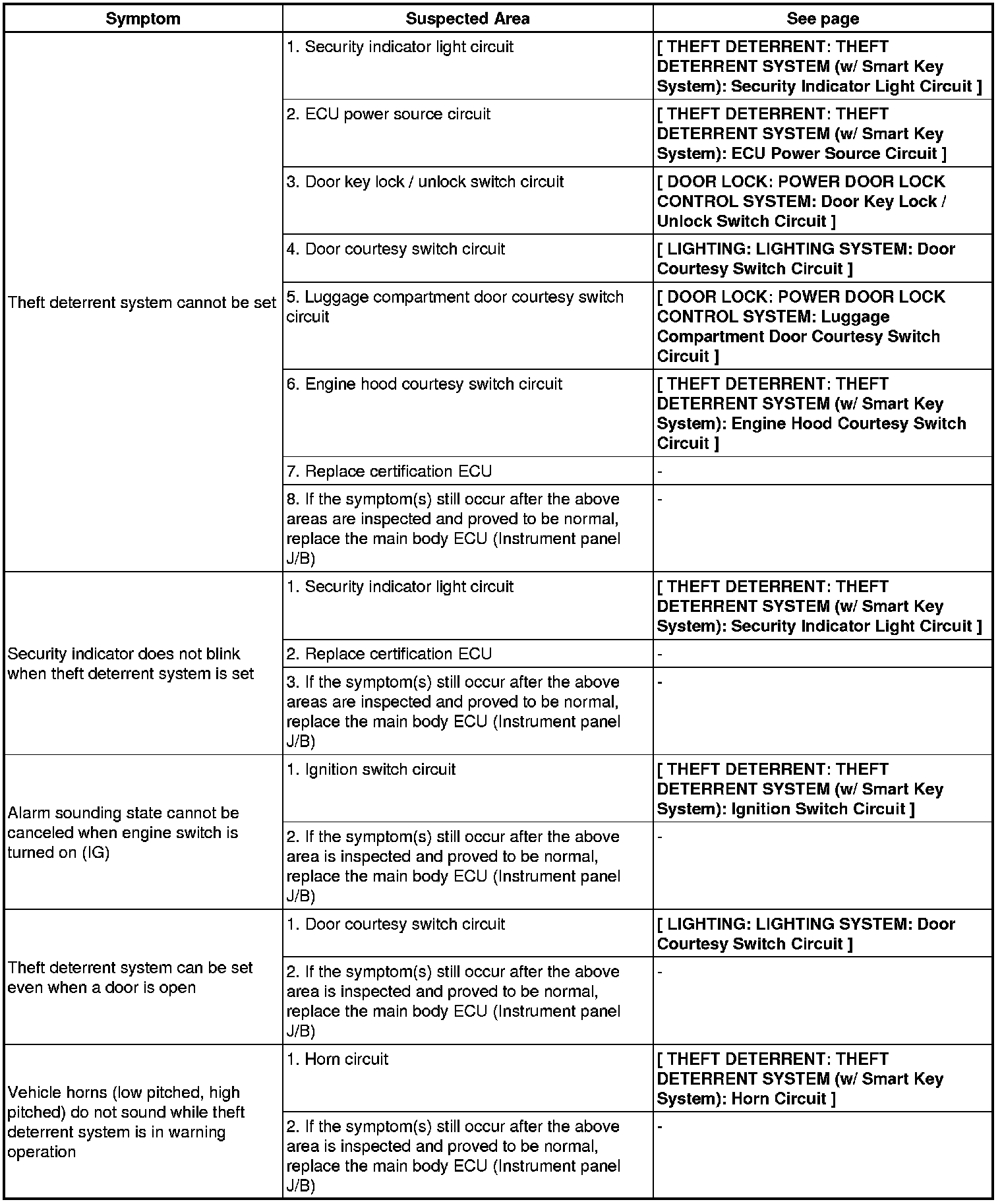 THEFT DETERRENT: THEFT DETERRENT SYSTEM (w/ Smart Key System): PROBLEM SYMPTOMS TABLE
