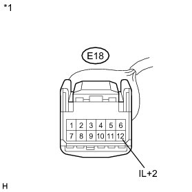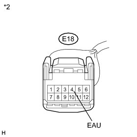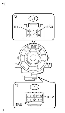(b) Connect a positive (+) lead to terminal IL+2 and a negative (-) lead to terminal EAU of the steering pad switch connector.