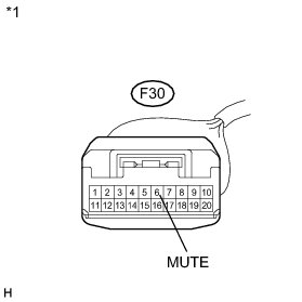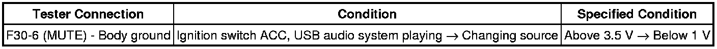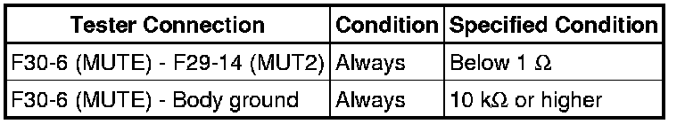The MUTE signal is sent to reduce noise and a popping sound generated when switching the mode etc. If there is an open in the circuit, noise can be heard from the speakers when changing the sound source. If there is a short in the circuit, even though the navigation receiver assembly is functioning normally, no sound or only an extremely faint sound can be heard.