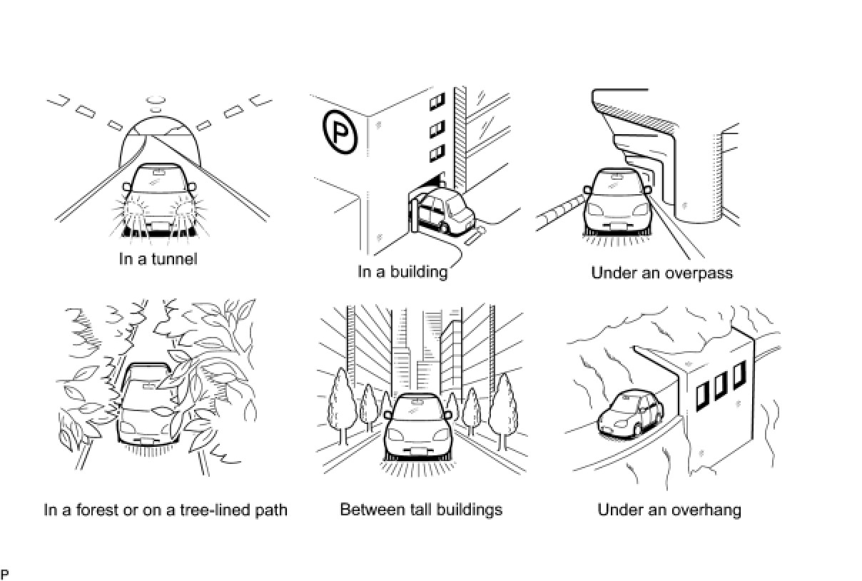 (a) Check if the vehicle is in a location where GPS signal reception is poor. If the vehicle is in such a place, relocate the vehicle and check if the GPS mark reappears.