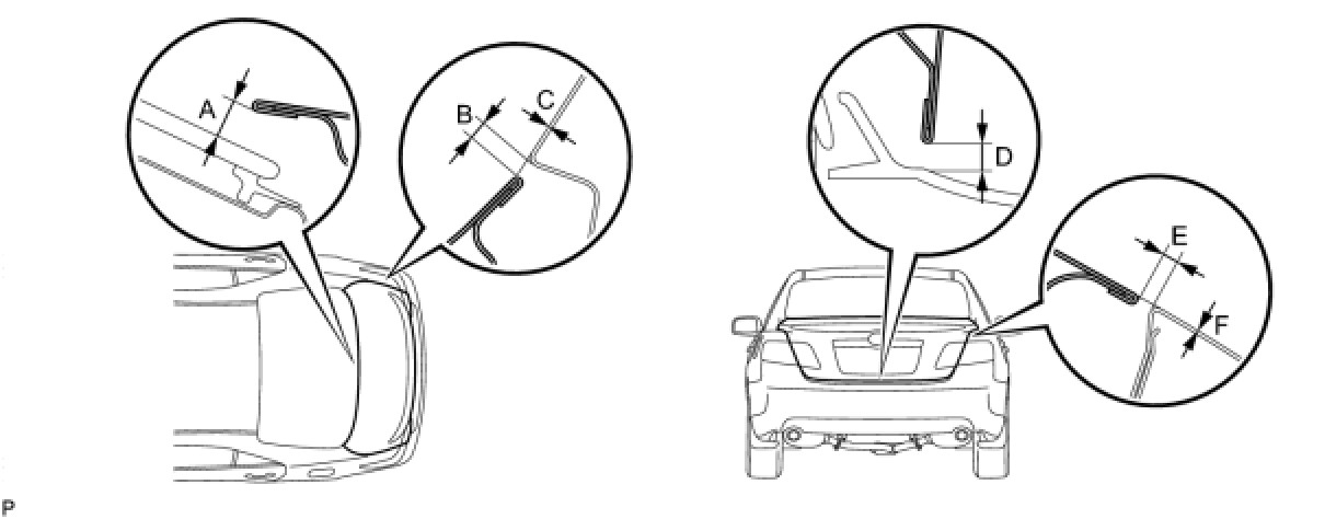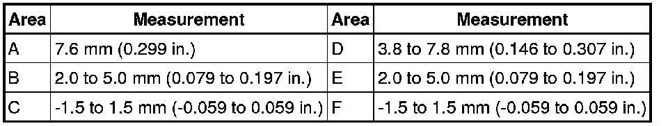 (a) Check that the clearance measurements of areas A through F are within each standard range.