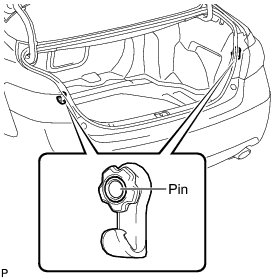 (a) Engage the 2 pins to install the 2 No. 1 luggage compartment trim hooks.