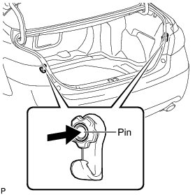 (a) Push the 2 pins and remove the 2 No. 1 luggage compartment trim hooks.