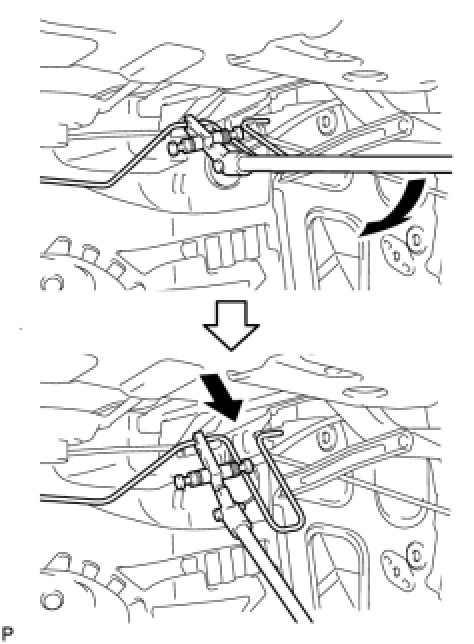 (a) Disconnect the luggage door hinge torsion bar LH from the luggage compartment door torsion bar support as shown in the illustration.