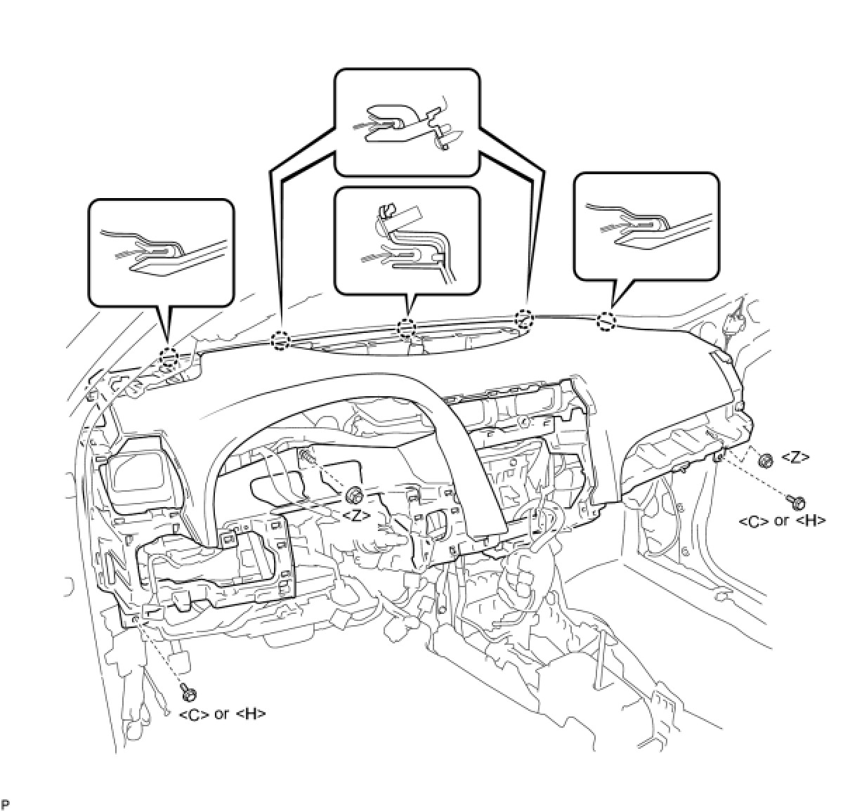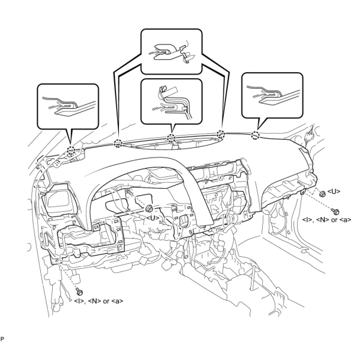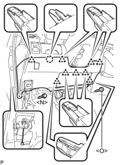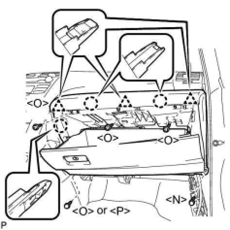 (c) Instal the instrument panel finish panel LH with the screw [O] and bolt [N].