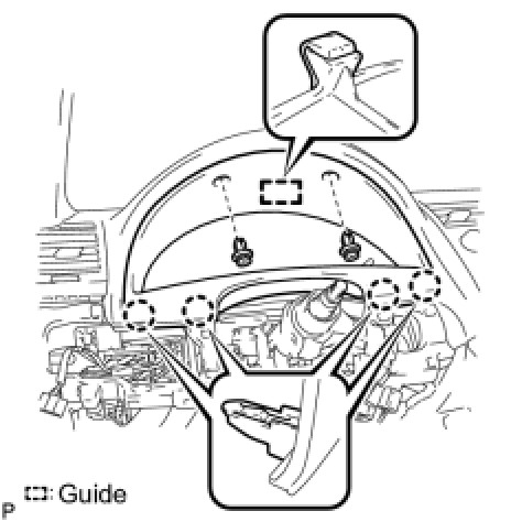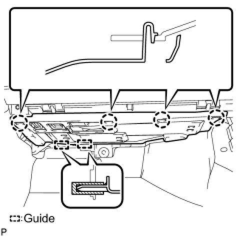 (a) Engage the 4 claws and 2 guides and install the instrument panel No. 2 under cover.