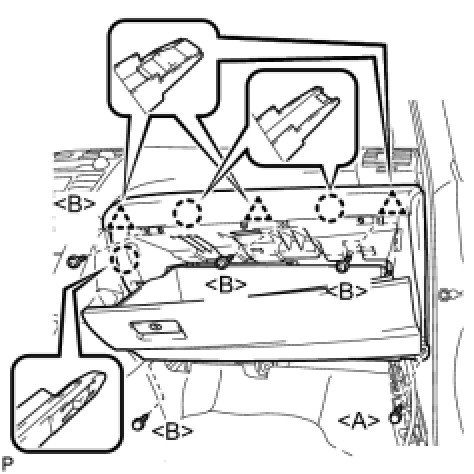 (c) Instal the instrument panel finish panel LH with the screw [B] and bolt [A].