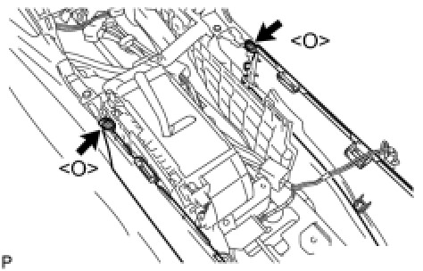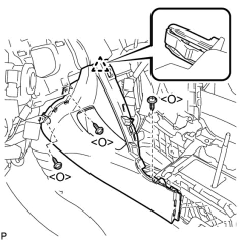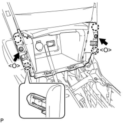 (c) Install the upper console panel sub-assembly with the 2 screws [O].