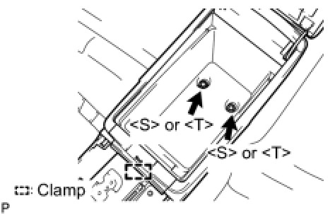 (b) Install the console box assembly with the 2 bolts [S] or [T].