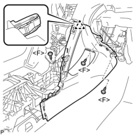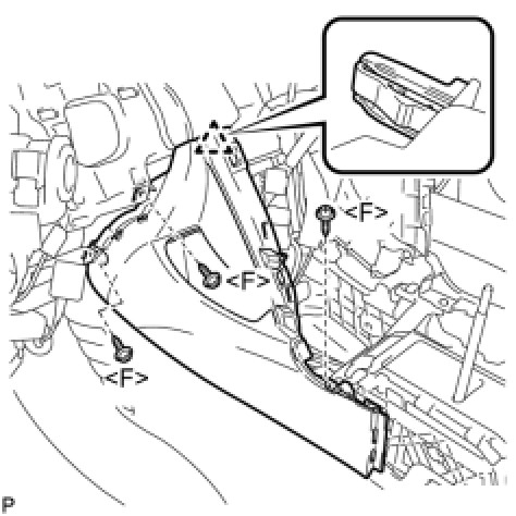 (c) Install the upper console panel sub-assembly with the 2 screws [F].