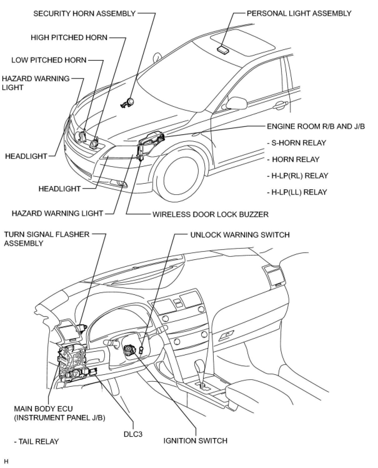 DOOR LOCK: WIRELESS DOOR LOCK CONTROL SYSTEM (w/o Smart Key System): PARTS LOCATION
