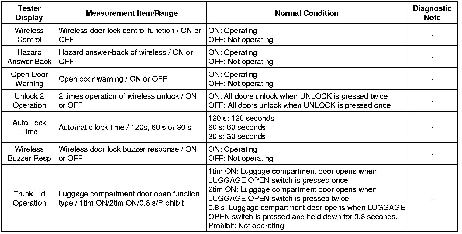 DOOR LOCK: WIRELESS DOOR LOCK CONTROL SYSTEM (w/ Smart Key System): DATA LIST / ACTIVE TEST