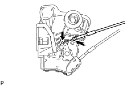 (d) Remove the front door lock open rod from the front door lock assembly.