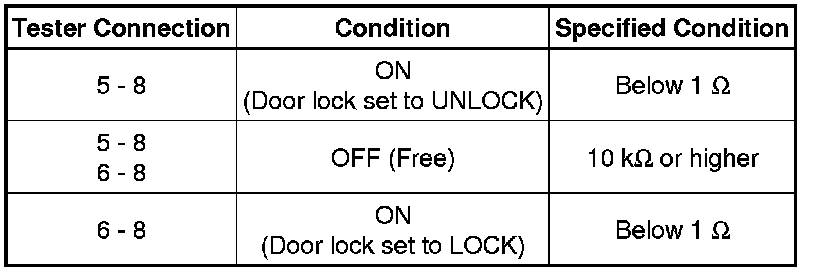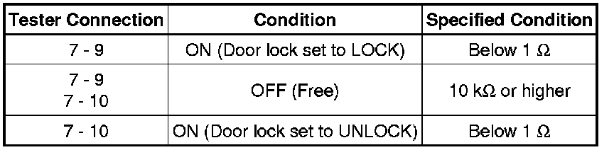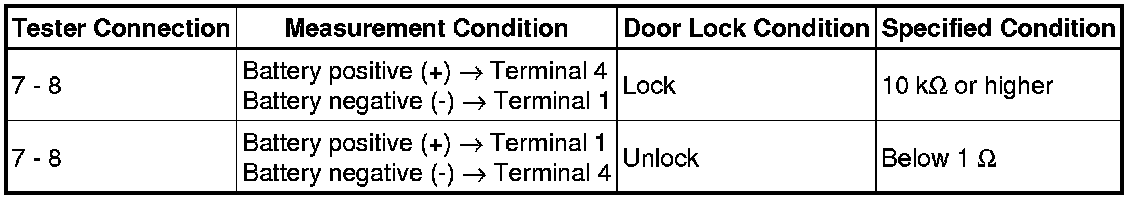 (1) Apply battery voltage and check operation of the door lock motor.