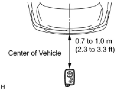(2) Step 2: When the electrical key is brought within 0.7 to 1.0 m (2.3 to 3.3 ft) of the vehicle, check that the system enters unlock standby mode.