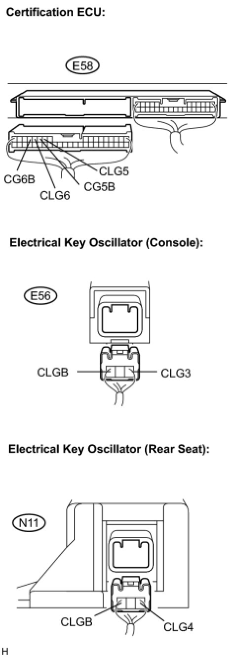 The certification ECU activates the front and rear cabin oscillators. The power is supplied from the certification ECU to both the front and rear cabin oscillators. The front and rear cabin oscillator circuits have the same wiring. If the smart key system does not operate properly inside the vehicle, check both the front and rear cabin oscillator circuits.